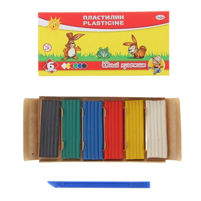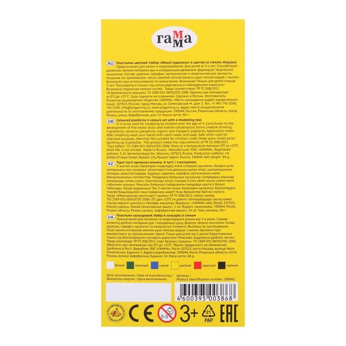 Пластилин 6 цветов 84 г, Гамма "Юный художник", со стеком, картонная упаковка 280042