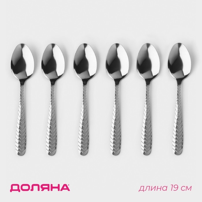 Набор столовых ложек из нержавеющей стали Доляна «Колосок», длина 20,5 см, толщина 2 мм, 6 шт, цвет серебряный