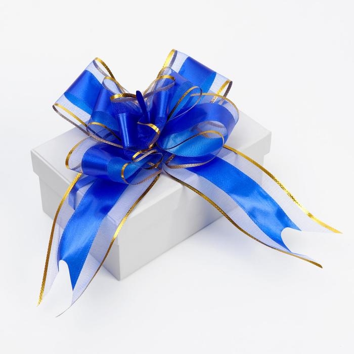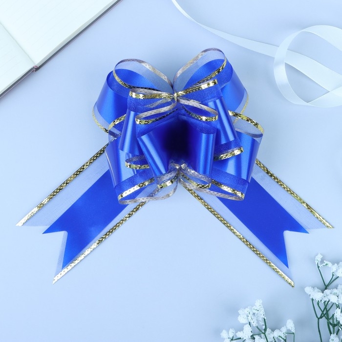 Бант-бабочка №7 "Золотая полоса", цвет синий