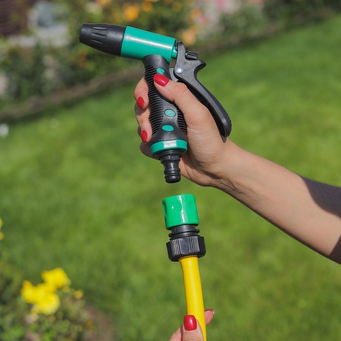 Коннектор предназначен для соединения шланга с пистолетами-разбрызгивателями и распылительными насадками. С ним вы сможете с легкостью менять насадки по необходимости, кроме того он оснащен системой аквастоп. Теперь при отсоединении насадки подача воды сразу же прекратится.