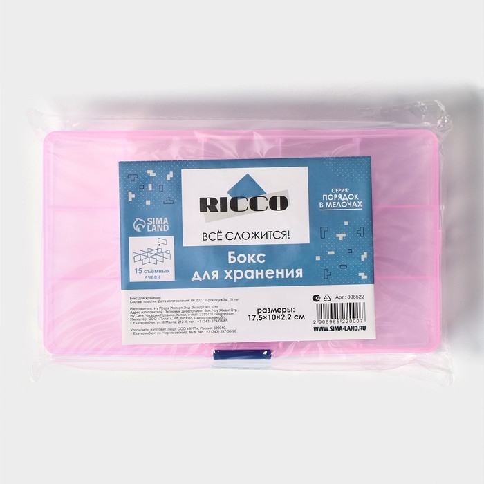 Органайзер для хранения RICCO, со съёмными ячейками, 15 ячеек, 17,5×10×2,2 см, цвет МИКС