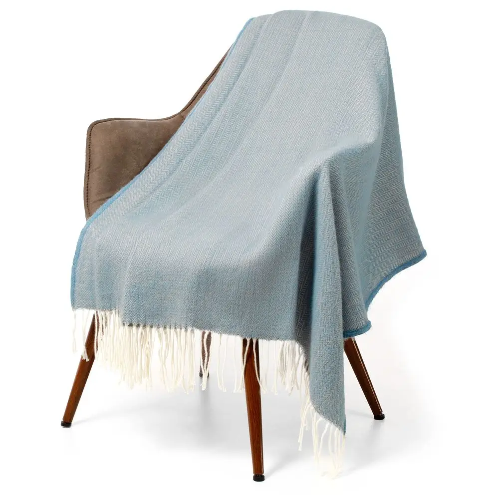 Плед с бахромой Bilbo приглушенного пастельного оттенка из натуральной новозеландской шерсти — это возможность без лишнего пафоса пожелать процветания и благополучия своему деловому партнеру.