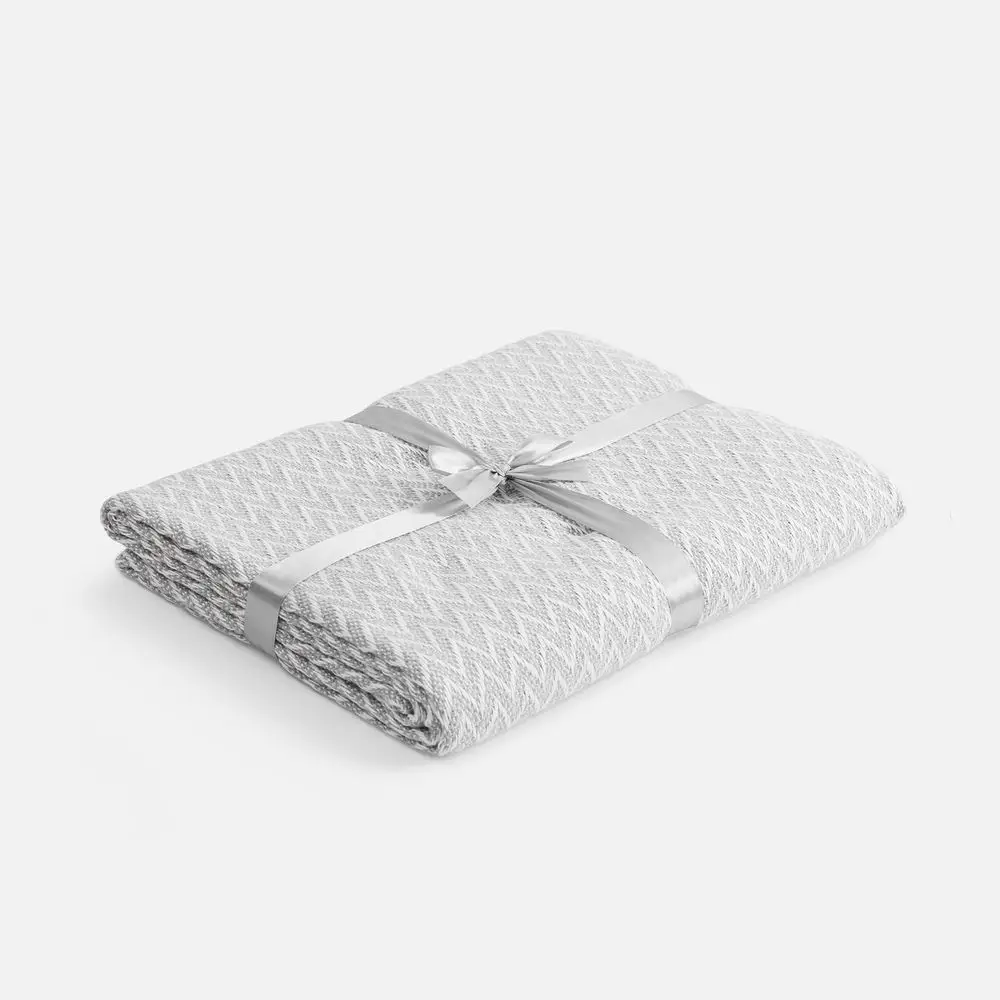 Плед Sagunt с ненавязчивым зигзагообразным узором и аккуратной бахромой подарит мгновения уюта и радости, порадует своим нежным дизайном и окутает теплом.