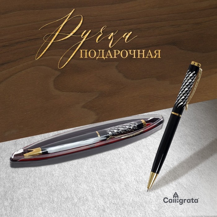 Ручка подарочная шариковая Calligrata, в кожзам футляре ПБ U,поворотная, корпус черный с золотом