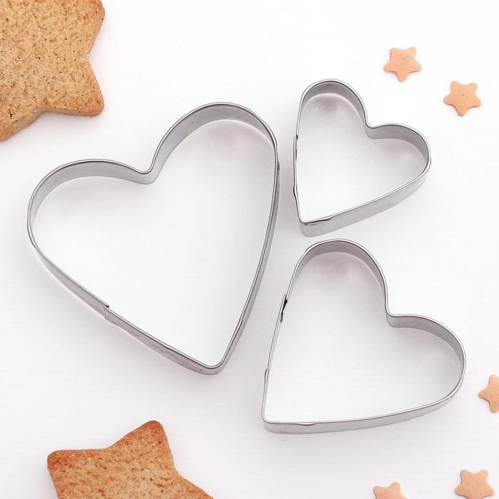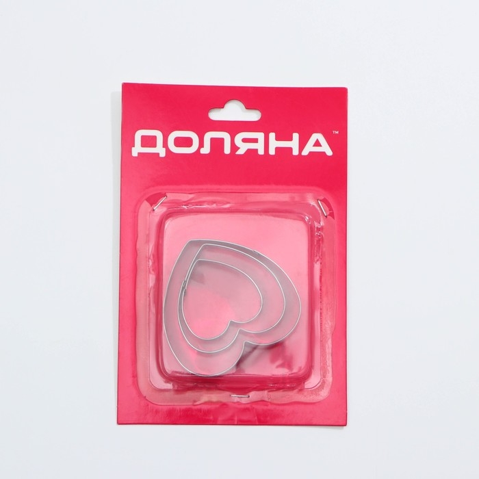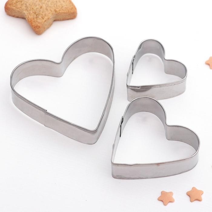 Набор форм для печенья Доляна «Сердечко», 3 шт, цвет серебристый