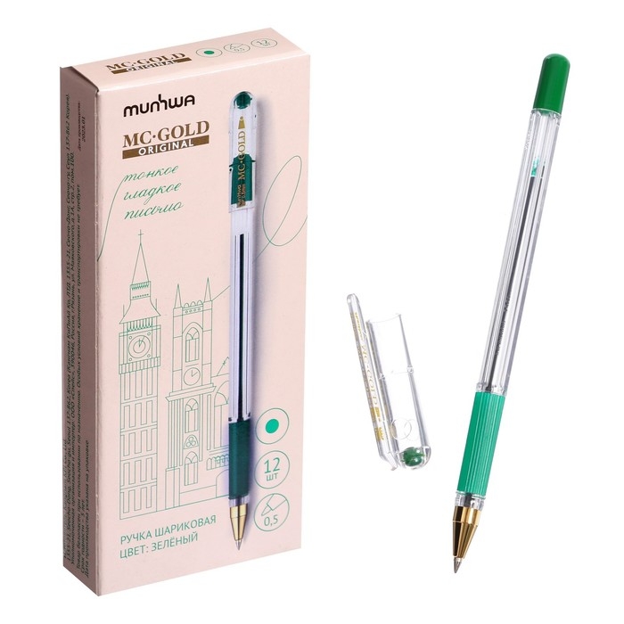 Ручка шариковая MunHwa MC Gold, стержень зеленый, узел 0.5 мм, грип