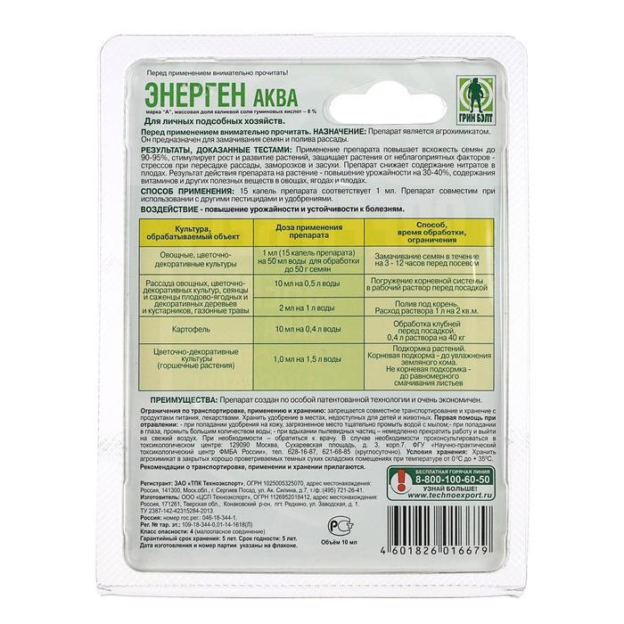 Средство для замачивания семян Энерген Аква флакон 10 мл