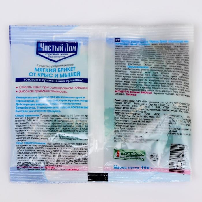 Тесто-брикет от крыс и мышей Чистый дом 100 г