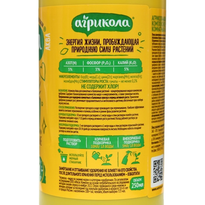 Используется как для корневой, так и для внекорневой подкормки. При норме разведения 5-10 мл удобрения на 1 л воды, флакона объемом 250 мл достаточно для получения 25-50 л подкормочного раствора.