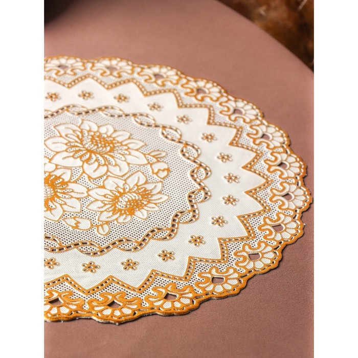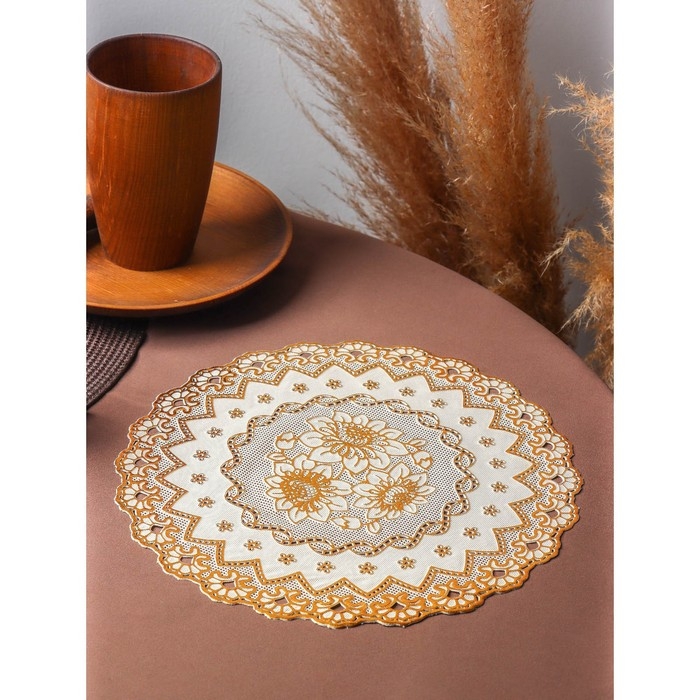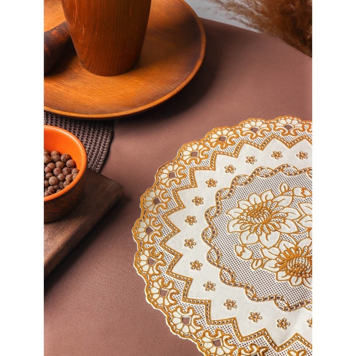 Салфетка сервировочная на стол «Букет», ажурная, d=30 см, цвет золото