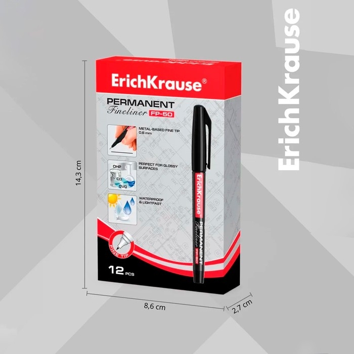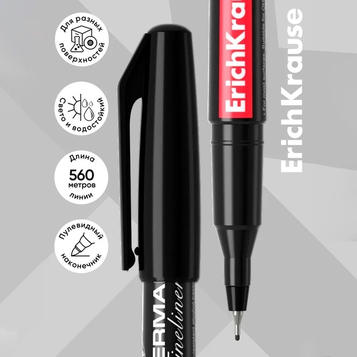 Маркер - лайнер перманентный ErichKrause FP-50, 0.6 мм, чернила на спиртовой основе, светостойкие и водостойкие, для любых поверхностей, чёрный