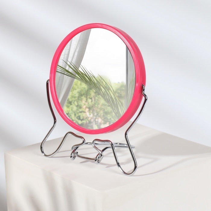 Зеркало на ножке «Овал», двустороннее, зеркальная поверхность 13,5 × 16,5 см, цвет МИКС