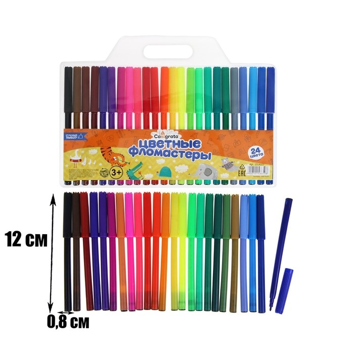 Набор фломастеров содержит 24 ярких и насыщенных цвета. Вентилируемый колпачок обеспечивает безопасное рисование для ребенка . Идеально подходят для детей от 3-х лет и для тех, кто только начинает свой творческий путь. Фломастеры состоят из пластика, чернил. Упаковка представлена в виде PVC пакета. Благодаря фломастерам Вы сможете воплотить все свои творческие фантазии в реальность.