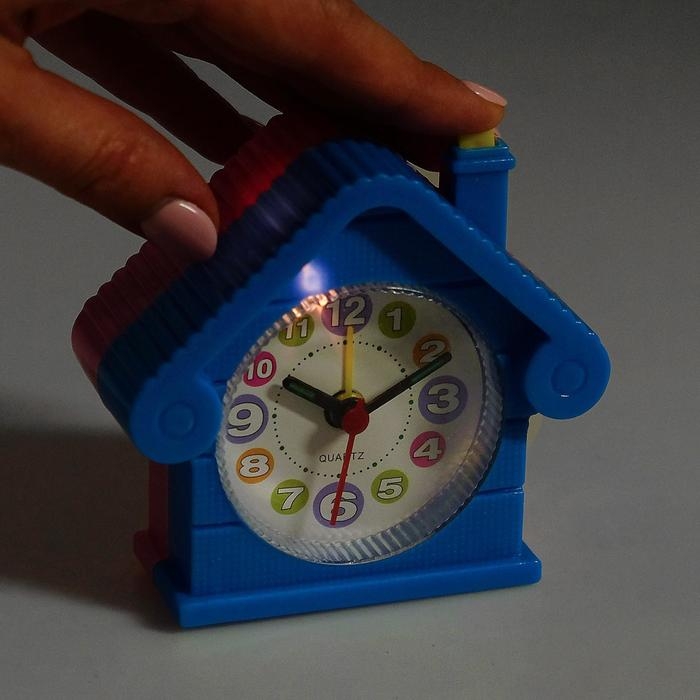 Часы настольные будильник детский с подсветкой "Домик", 9 х 8.5 см, микс