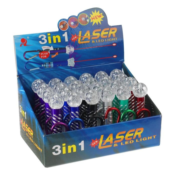 Фонарик «Шар», на карабине, с лазером, светящийся, цвета МИКС станет отличным развлечением для детей и взрослых. Нажмёте на одну кнопку — фигурка на конце атрибута будет переливаться ярким светом. На другую — появится красный луч. Домашние животные точно оценят игру с неуловимым «светлячком».