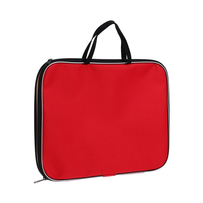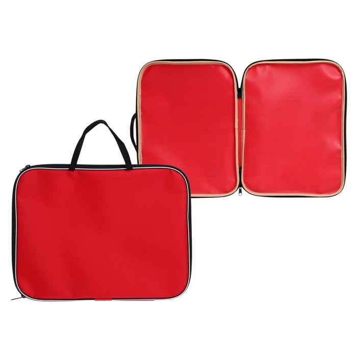 Папка с ручками текстильная А4, 350 х 270 х 20 мм, Calligrata "Офис", нейлон 600D, двуцветный кант, красная (чёрные ручки и молния)