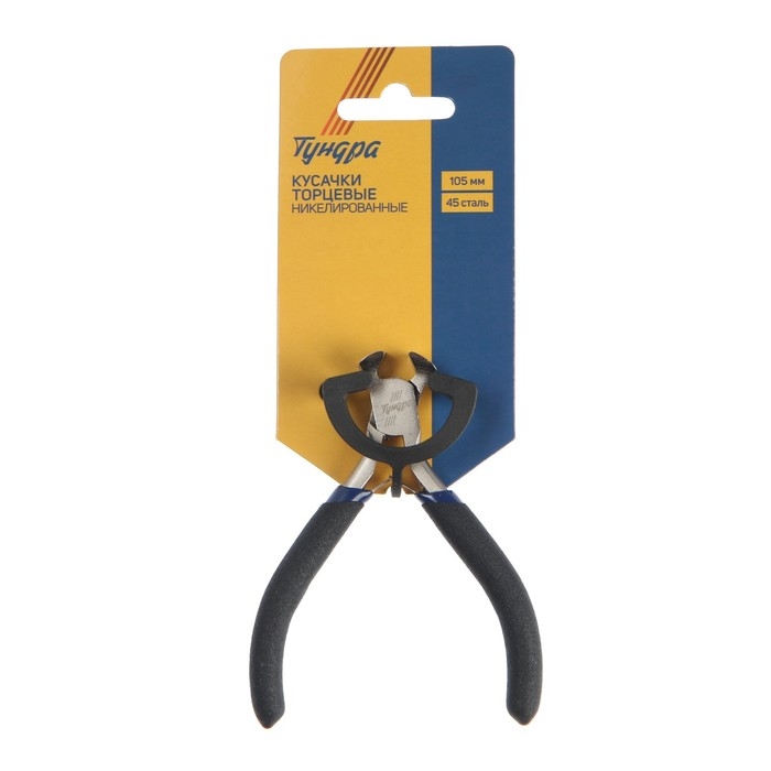 Кусачки торцевые ТУНДРА mini, никелированные, обрезиненные рукоятки, 105 мм