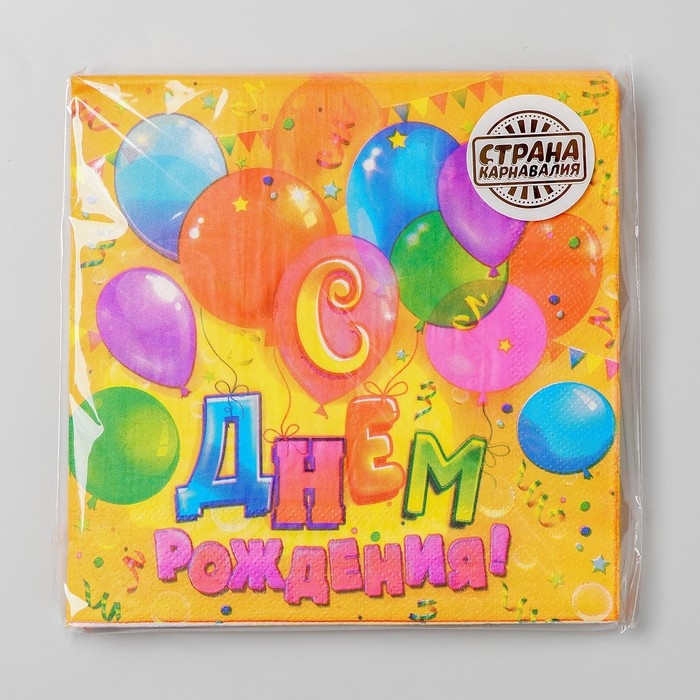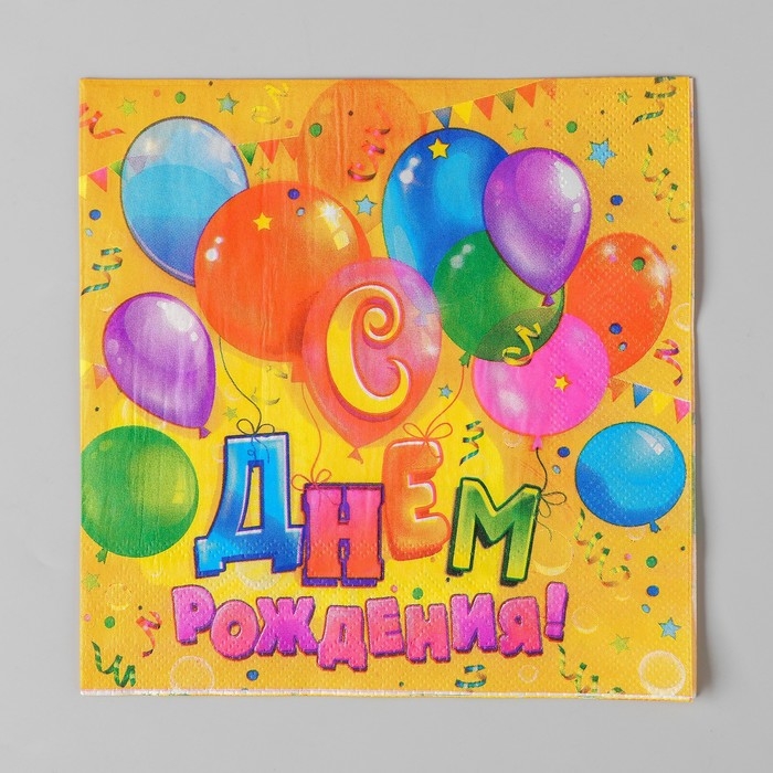 Салфетки бумажные двухслойные «С днём рождения», шарики, конфетти, 33х33, 20 шт.