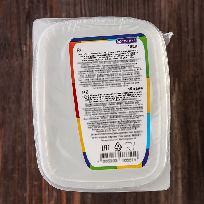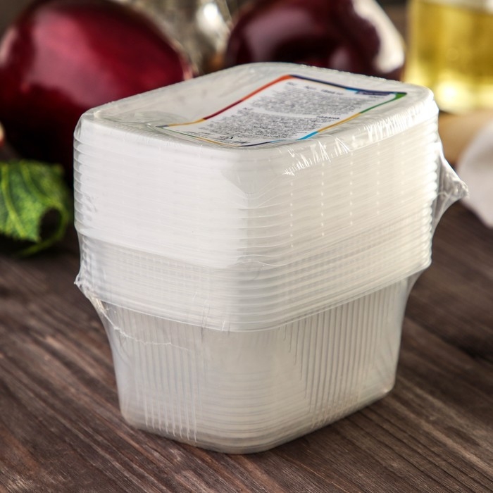 Контейнер пластиковый одноразовый с крышкой, 10 шт, 250 мл, 10,8×8,2×4,6 см, цвет прозрачный