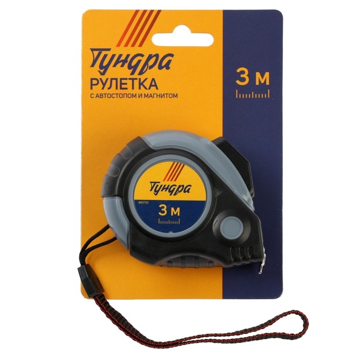 Рулетка ТУНДРА, двухкомпонентный корпус, автостоп, 3 м х 16 мм, магнитный зацеп