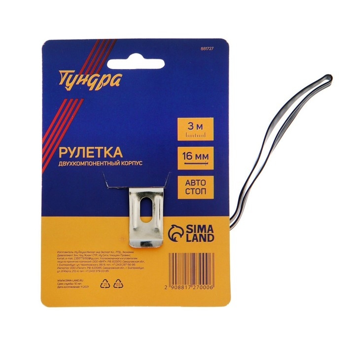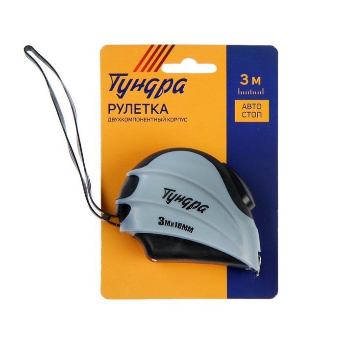 Рулетка ТУНДРА, двухкомпонентный корпус, автостоп, 3 м х 16 мм