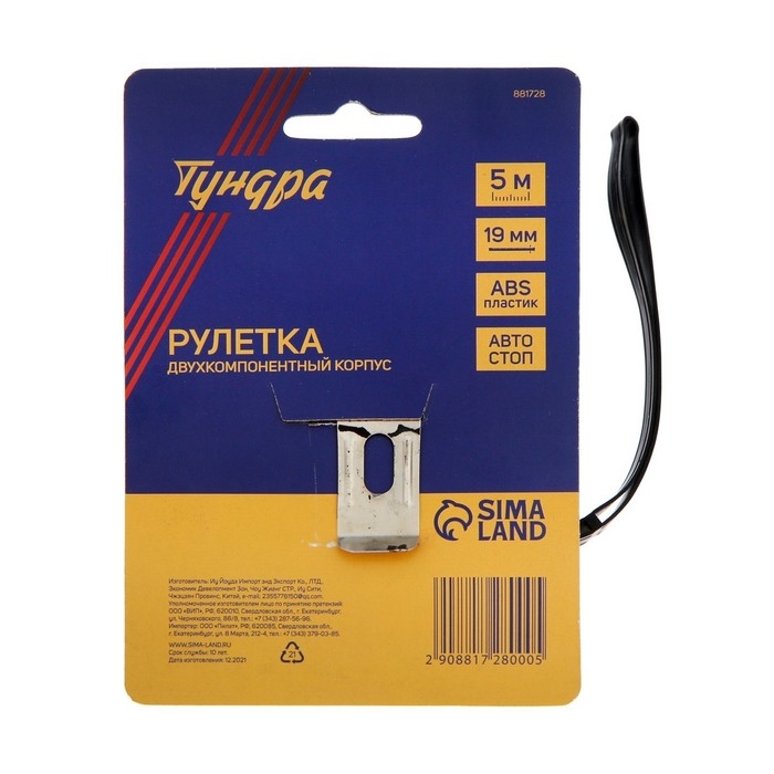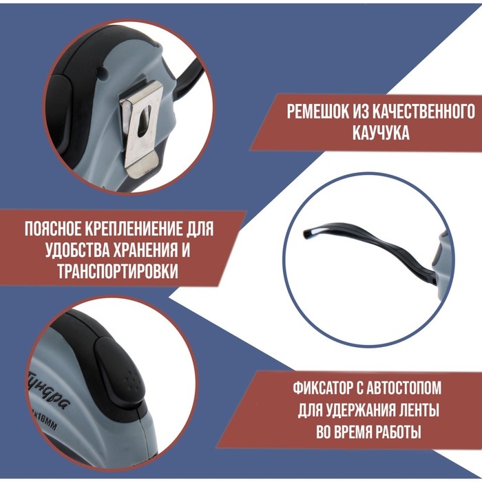 Рулетка ТУНДРА, двухкомпонентный корпус, автостоп, 5 м х 19 мм