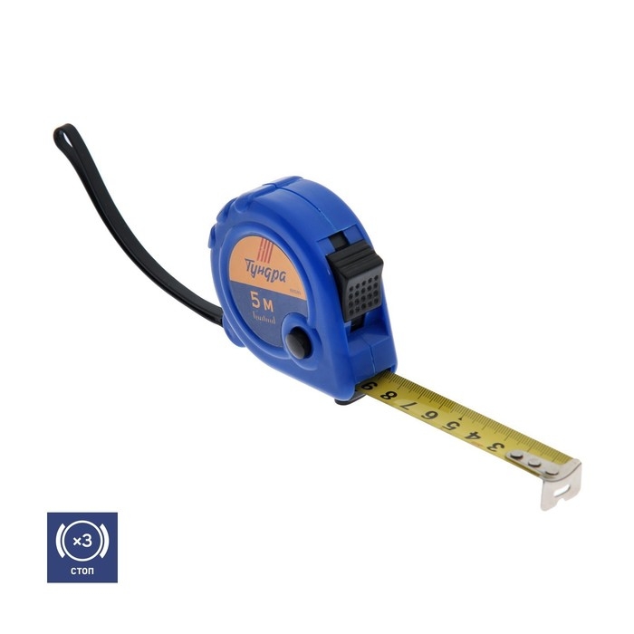 Рулетка ТУНДРА, пластиковый корпус, 3 фиксатора, 5 м х 19 мм