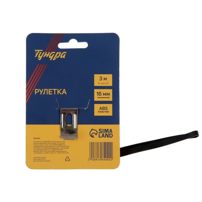 Рулетка ТУНДРА, пластиковый корпус, 3 м х 16 мм