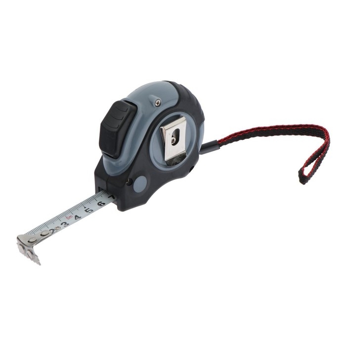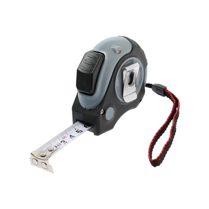 Измерительная лента сделана из металлического полотна. Корпус облачён в противоскользящее резиновое покрытие для комфортной работы. Рулетка оснащена кнопкой плавного стопа и магнитным зацепом.
