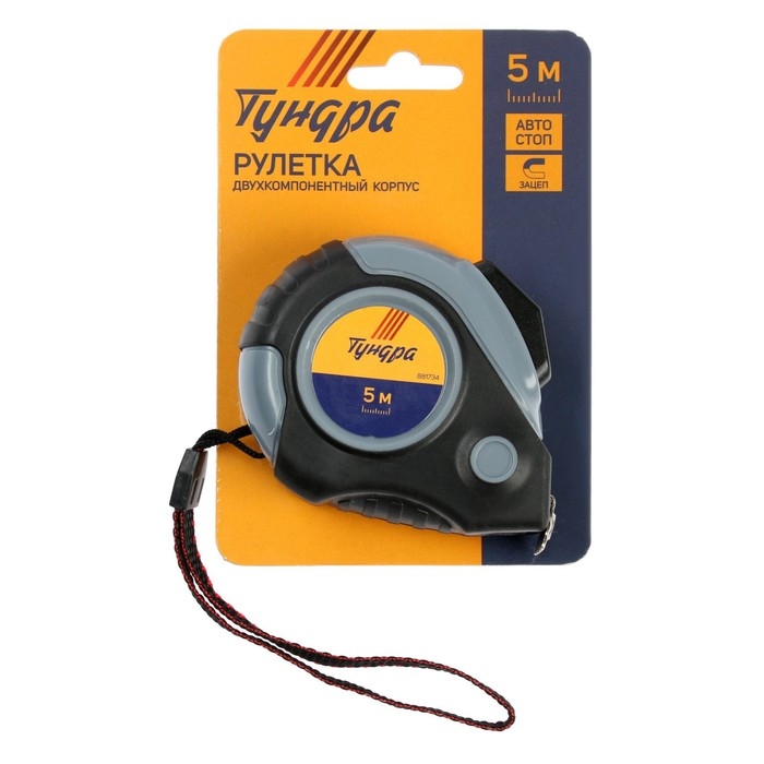 Рулетка ТУНДРА, двухкомпонентный корпус, автостоп, 5 м х 19 мм