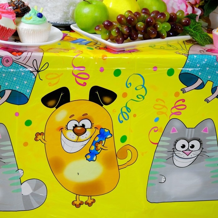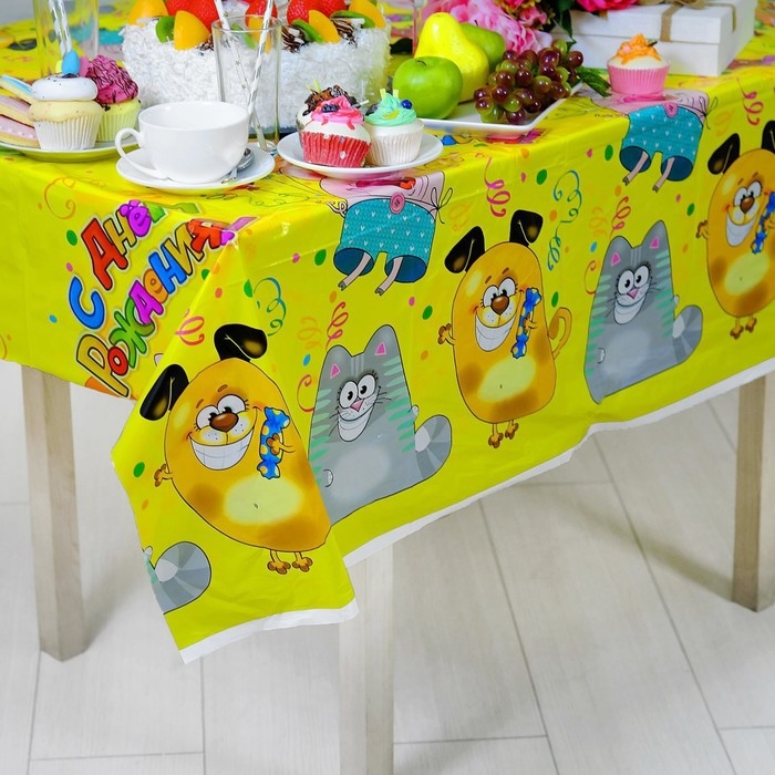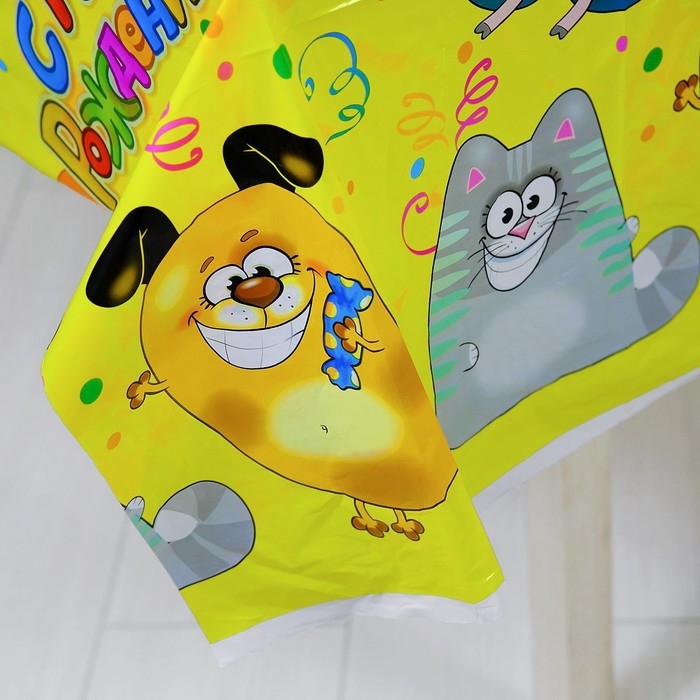 Скатерть одноразовая «С днём рождения», животные, 180х137 см