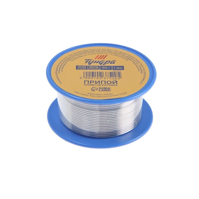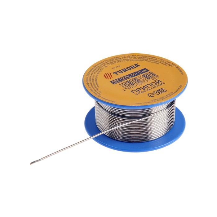 Припой ТУНДРА, ПОС 63, на катушке, 0.8 мм, 50 г