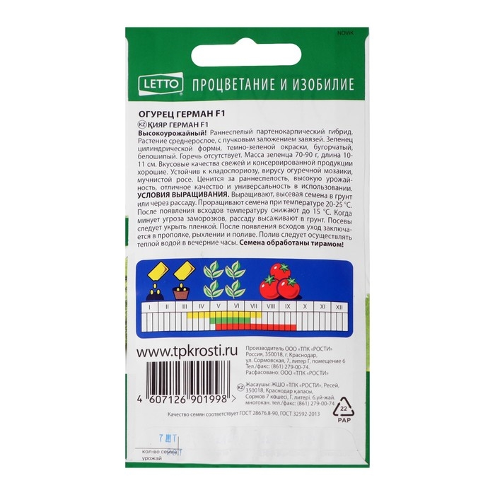 Семена Огурец Герман F1 самоопыляемый, 7 шт