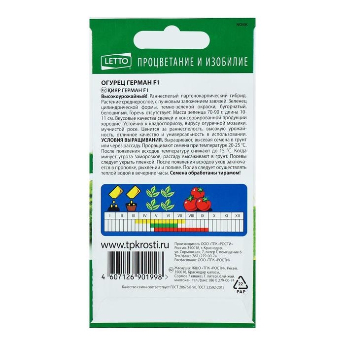 Семена Огурец Герман F1, партенокарпический, 5 шт