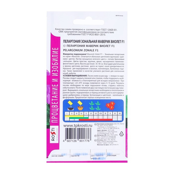 Семена комнатных цветов Пеларгония "Виолет", 4 шт.