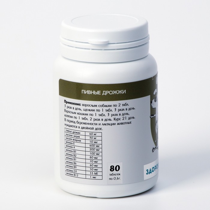 Пивные дрожжи "Здоровый желудок" для кошек и собак, с энтеросорбентом, 80 таб
