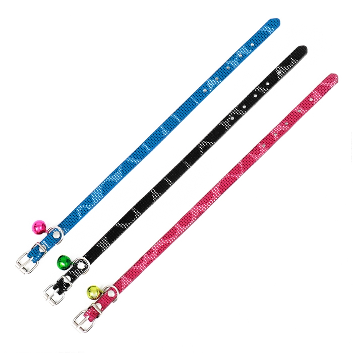 Ошейник с косточками светоотражающий, 37 х 1,3 см, ОШ 26-33, чёрный