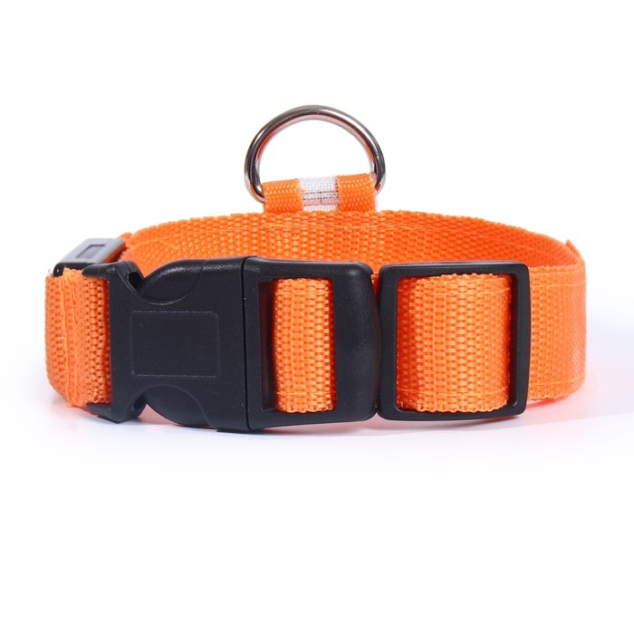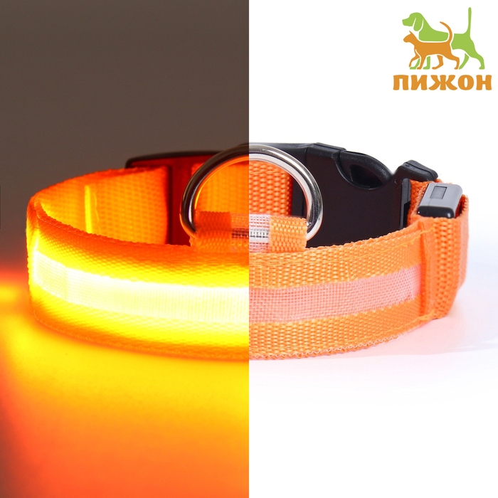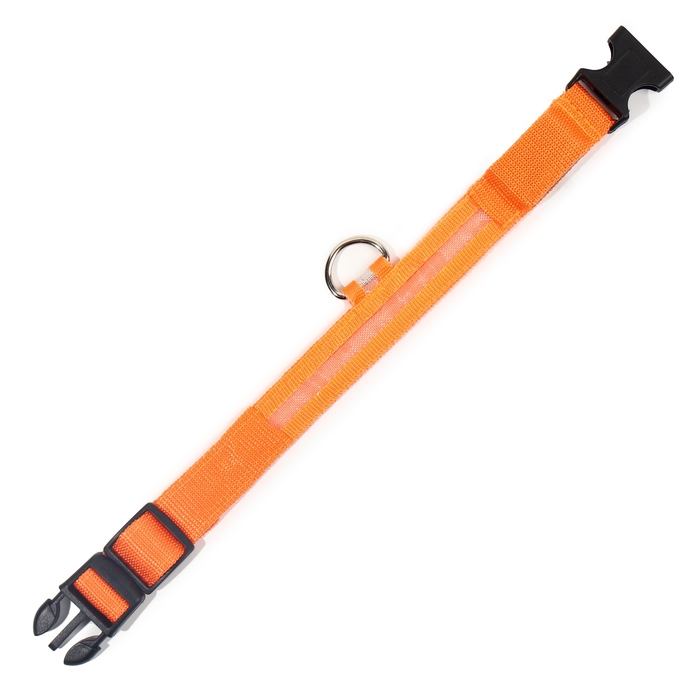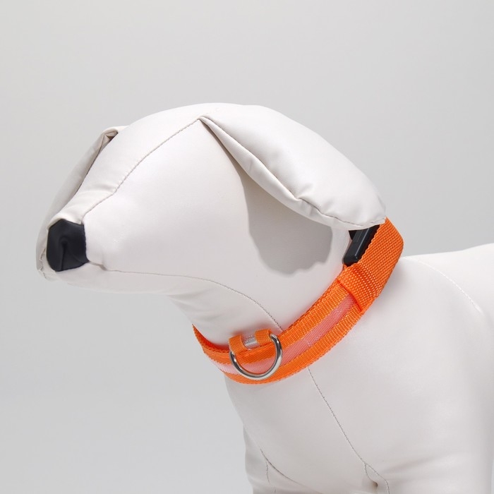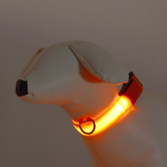 Ошейник с подсветкой размер S, ОШ 35-43 х 2,5 см, 3 режима свечения оранжевый