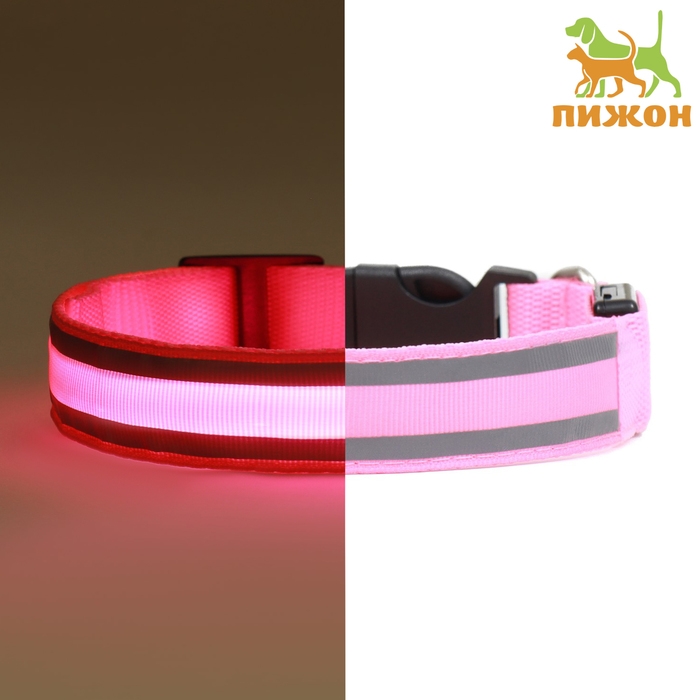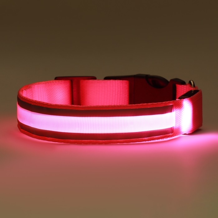 Ошейник с подсветкой "Двойная полоса", 3 режима свечения, розовый