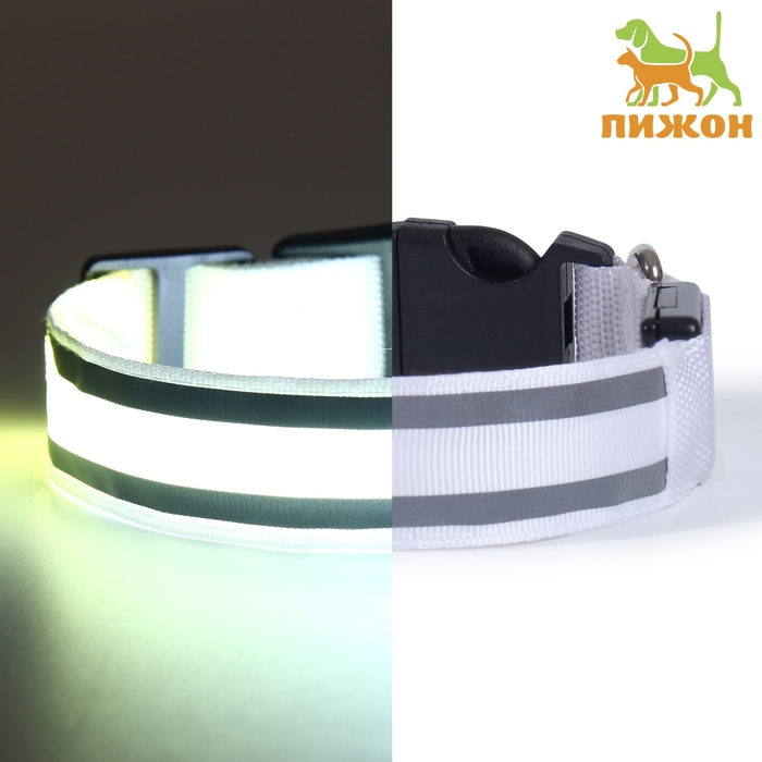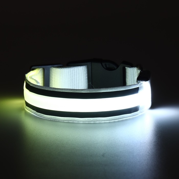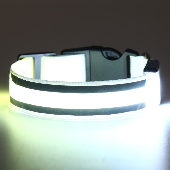 Ошейник с подсветкой "Двойная полоса", 3 режима свечения, белый