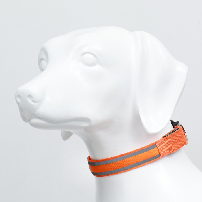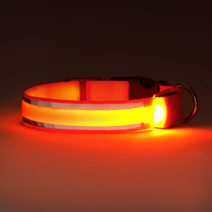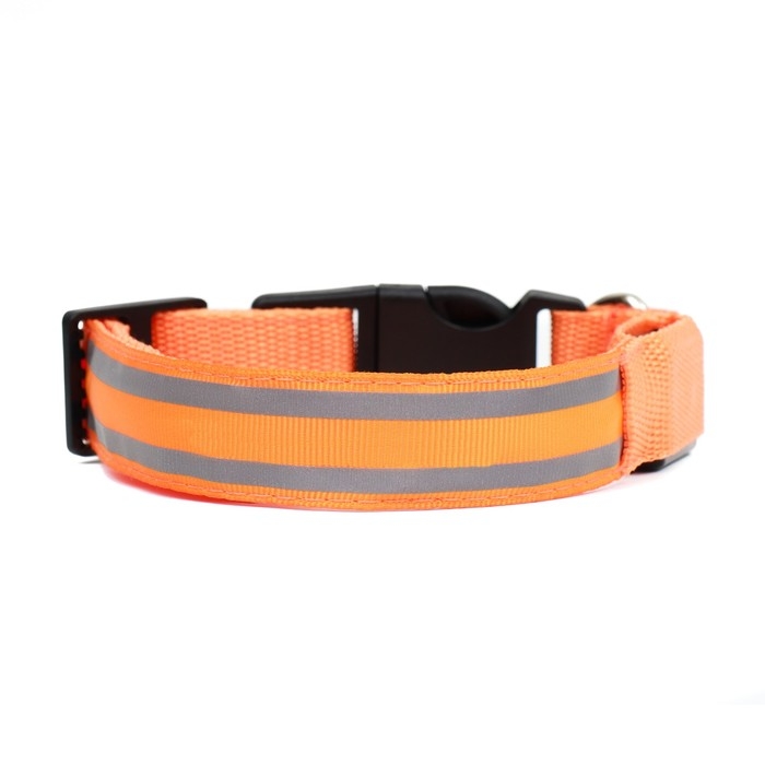 Ошейник с подсветкой размер XL, ОШ 52-60 х 2,5 см, 3 режима свечения оранжевый