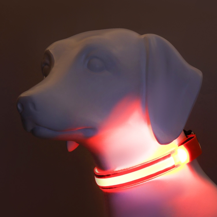 Ошейник с подсветкой "Двойная полоса", 3 режима свечения, красный