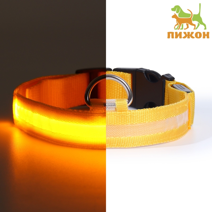 Ошейник с подсветкой размер L, ОШ 45-52 х 2,5 см 3 режима свечения жёлтый