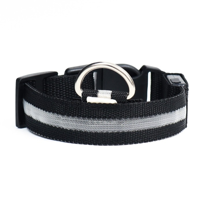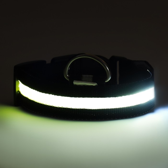 Ошейник с подсветкой размер М, ОШ 40-48 х 2,5 см, 3 режима свечения чёрный