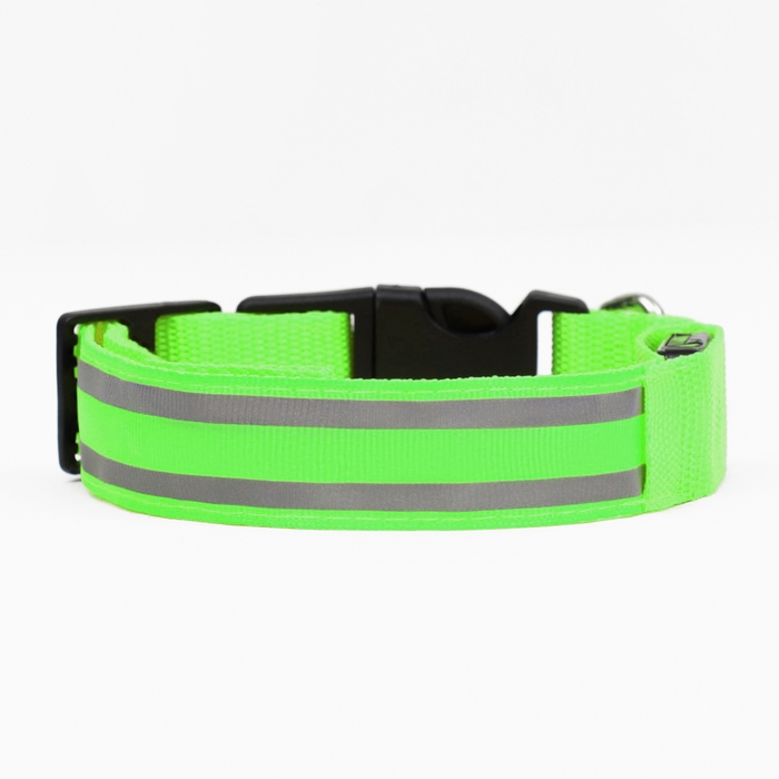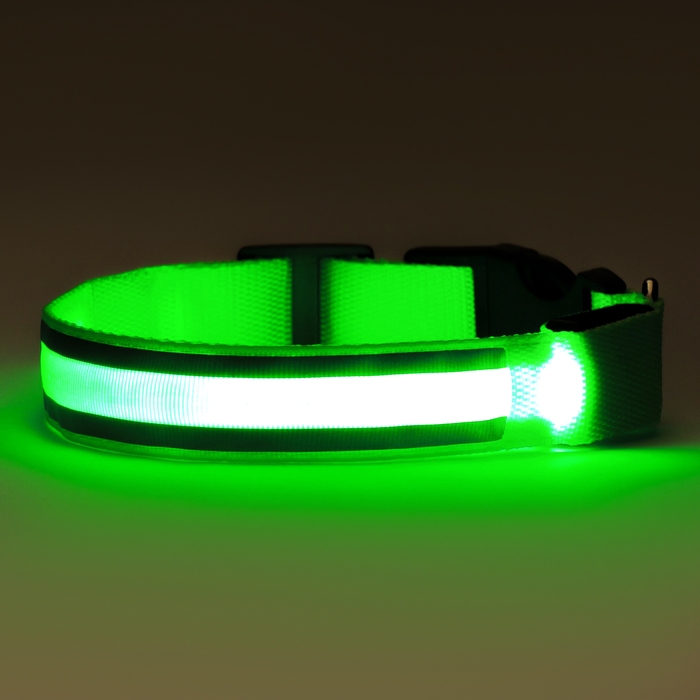 Ошейник с подсветкой размер L, ОШ 45-52 х 2,5 см, 3 режима свечения зелёный
