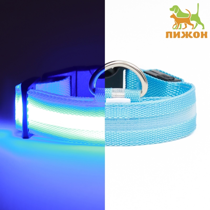 Ошейник с подсветкой, 3 режима свечения, голубой