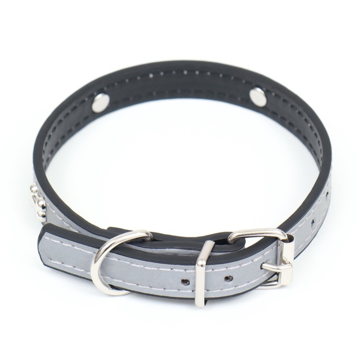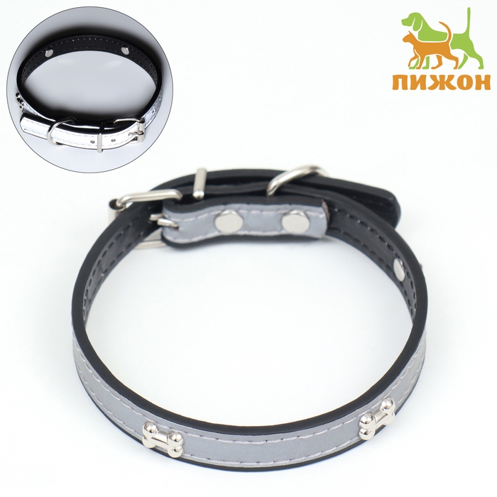 Ошейник с косточками светоотражающий, 37 х 1,3 см, ОШ 26-33, чёрный