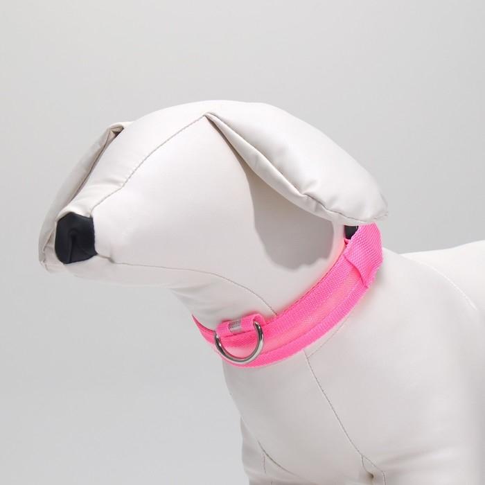 Ошейник с подсветкой размер S, ОШ 35-43 х 2,5 см, 3 режима свечения розовый