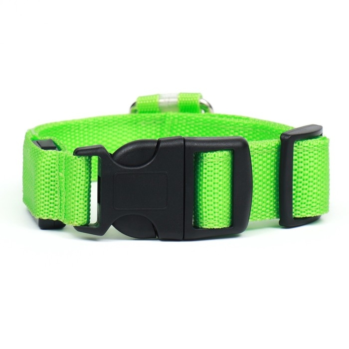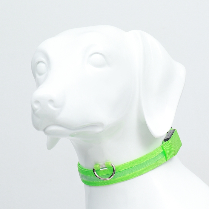 Ошейник с подсветкой размер М, ОШ 40-48 х 2,5 см, 3 режима свечения зелёный
