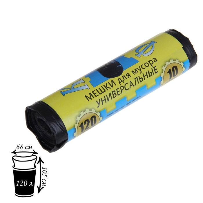 Мешки для мусора, 120л, ПНД, 13 мкм, 68×105 см,10 шт, цвет чёрный